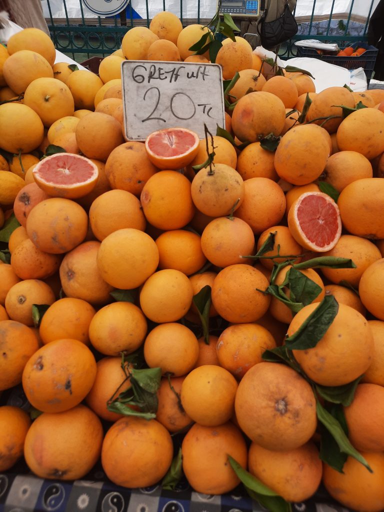 Die negativen Gedanken verschwinden zum Glück schnell wieder, als wir am nächsten Tag eine richtig schöne Radeletappe absolvieren. Erst geht es an einem See – mit Fahrradweg! – entlang mit tollen Blicken auf die umliegende Bergwelt, dann durch endlos scheinende, duftende Orangenhaine. Zwischendrin mal ein Zitronen- oder Pampelmusenbaum, aber hauptsächlich Orangenbäume, die voll mit saftig-reifen Früchten hängen. Da müssen wir zuschlagen! Für umgerechnet einen Euro belade ich unsere Packtaschen mit zwei Kilo Zitrusfrüchten. Zum Glück stehen heute nicht mehr ganz so viele Höhenmeter an!