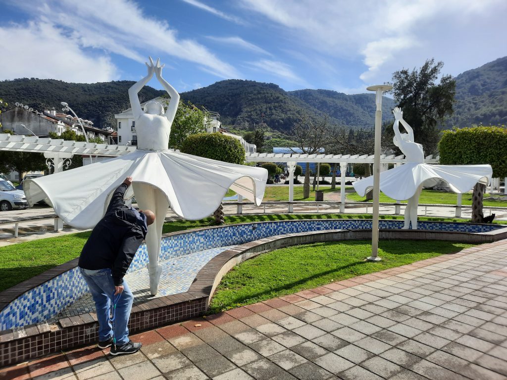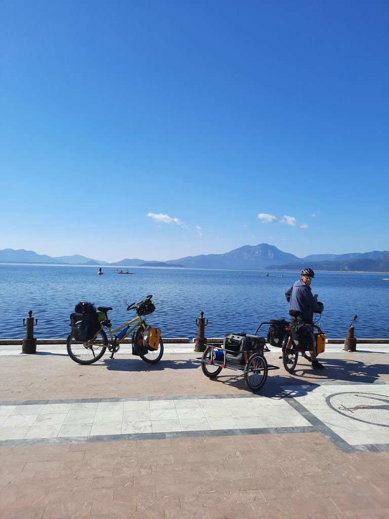 Erstes Ziel ist Fethiye, eine Stadt am Mittelmeer, wo wir direkt wieder eine kleine Pause machen müssen, da Vince’ Pedale kaputt ist und wir sie dort reparieren lassen möchten. Bis jetzt konnte Vince immerhin noch treten und so dachten wir, dass wir die 70 Kilometer bis Fethiye auch noch schaffen. Zu früh gefreut! Nach nur zwanzig Kilometern gibt die Pedale komplett den Geist auf und ab jetzt heißt es: schieben. Drei große Steigungen über mehrere Kilometer liegen vor uns. Bergab kann er zum Glück rollen, sodass wir es noch vor dem Dunkelwerden zu unserer Unterkunft schaffen.