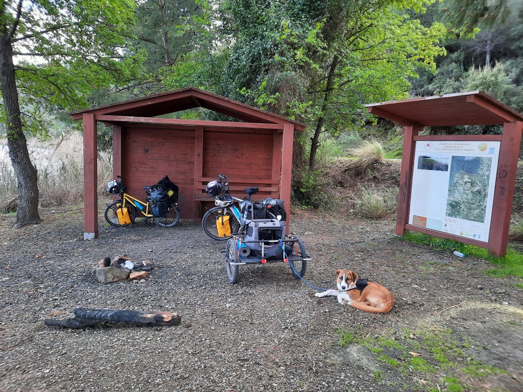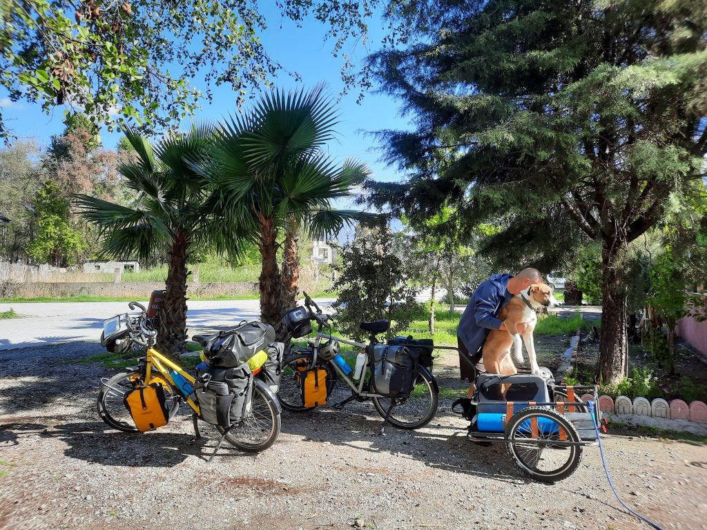 Wir verlassen Fethiye und wollen nun wieder in den Radel-Alltag zurück. Mit Camping und allem Drum und Dran. Aber irgendwie ist der Wurm drin. Am ersten Tag regnet es den gesamten Nachmittag, sodass wir wieder notgedrungen in einem Hotel landen. Tags darauf finden wir einfach keinen passenden Platz zum Zelten und dann verlieren wir auch noch eine Schraube am Anhänger. Wieder eine Unterkunft suchen. Wir sind genervt und fragen uns, ob wir es je wieder schaffen, in unseren alten Rhythmus reinzukommen. Hätten wir nicht so lange pausieren sollen? Hätten wir den Hund nicht adoptieren sollen?