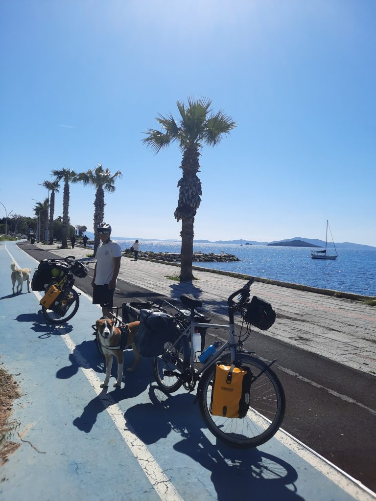 Es gibt nur einen Campingplatz, der offen ist, also fällt die Wahl nicht schwer. Den Nachmittag verbringen wir am Strand und Armin spielt mit zwei zuckersüßen Welpen. Wir sind heute nur 28 Kilometer gefahren, aber es fühlt sich an als wären es achtzig gewesen. Morgen erreichen wir den Urlaubsort Bodrum, wo wir uns gleich für vier Nächte eine Unterkunft gebucht haben. Wir haben noch einiges zu erledigen für die Einreise mit Armin in die EU und seit ein paar Tagen machen wir uns Gedanken, ob wir unsere geplante Route tatsächlich bis zum Ende durchziehen wollen.