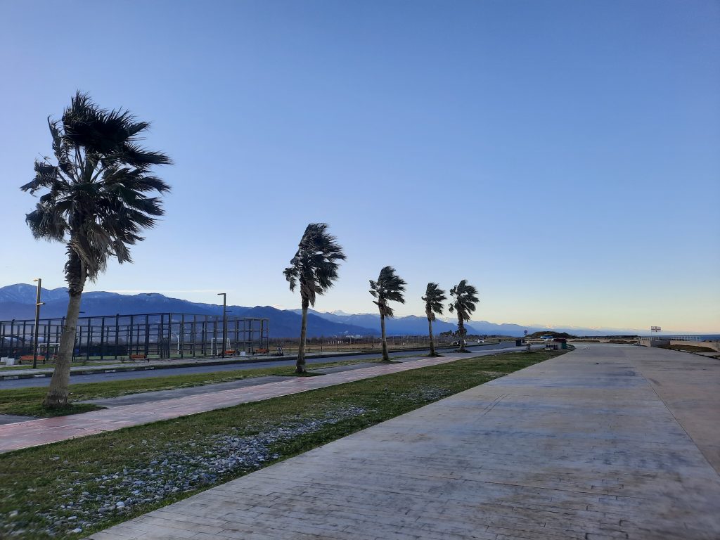 Vince hatte sich schon vor Wochen eine neue Bremse nach Tiflis bestellt, denn nach seinem Sturz in Svanetien im Sommer war diese nur provisorisch repariert worden. Eigentlich hätte das Teil längst geliefert werden sollen, aber anscheinend hing das Paket irgendwo zwischen Türkei und Georgien fest. Also hieß es mal wieder abwarten und Unterkunft verlängern. Wir hatten allerdings bereits ein Häuschen in Batumi an der Küste gemietet und hatten somit ziemlichen Zeitdruck.