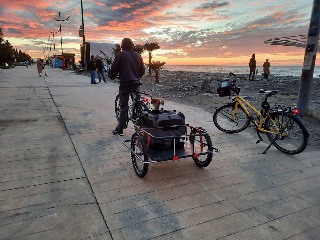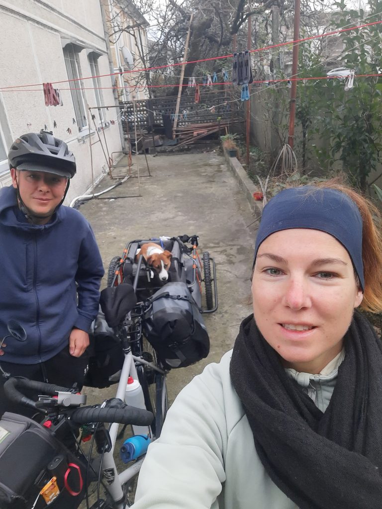 Ein Problem gelöst, geht es direkt weiter: wie kommen wir nach Georgien? Radeln wollen wir die Strecke nicht noch einmal, schon gar nicht im tiefsten Winter. Ein Besuch am Bahnhof von Jerewan ist ernüchternd; die Tickets sind teuer und man kann uns nicht wirklich sagen, ob die Fahrräder und der Hund ohne Probleme mitfahren können. Diese Option fällt also schon einmal raus. Ein Auto zu mieten ist aufgrund des Grenzübergangs viel zu teuer. Und da kommt wieder der gute Emil ins Spiel. Er bietet an, uns zu fahren. Wie viel Glück kann man eigentlich haben? Sobald der Hundeanhänger fertig ist, werden die Räder auf das Dach von seinem Van geschnallt und es geht Richtung Tiflis.