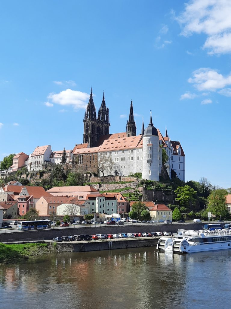 Zudem sprengt das wirklich sehr einfache Hotelzimmer direkt zu Beginn unser Budget. Aber eine weitere Nacht in der nassen, eisigen Kälte kam nicht in Frage. Zum Glück hatten wir die Gewissheit, am nächsten Tag in Dresden anzukommen, wo wir bei meinen Verwandten übernachten würden. Der dritte Tag war dann tatsächlich wunderschön: Kurz nach Bad Liebenwerda erreichten wir den Elberadweg und rollten im Trockenen bis nach Meißen. Dort machten wir Mittagspause und schauten uns die niedliche Altstadt an. Dann ging es weiter nach Dresden, wo wir herzlichst empfangen wurden und ein paar schöne Stunden mit der Familie verbrachten. Später trafen wir uns noch mit einem Freund, der uns seine Stadt bei einem abendlichen Spaziergang zeigte. Wir ließen den Tag mit einem Drink ausklingen und fielen todmüde ins Bett. Immerhin sind wir in den letzten drei Tagen bereits über 200 Kilometer geradelt!